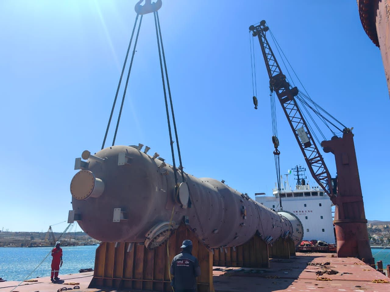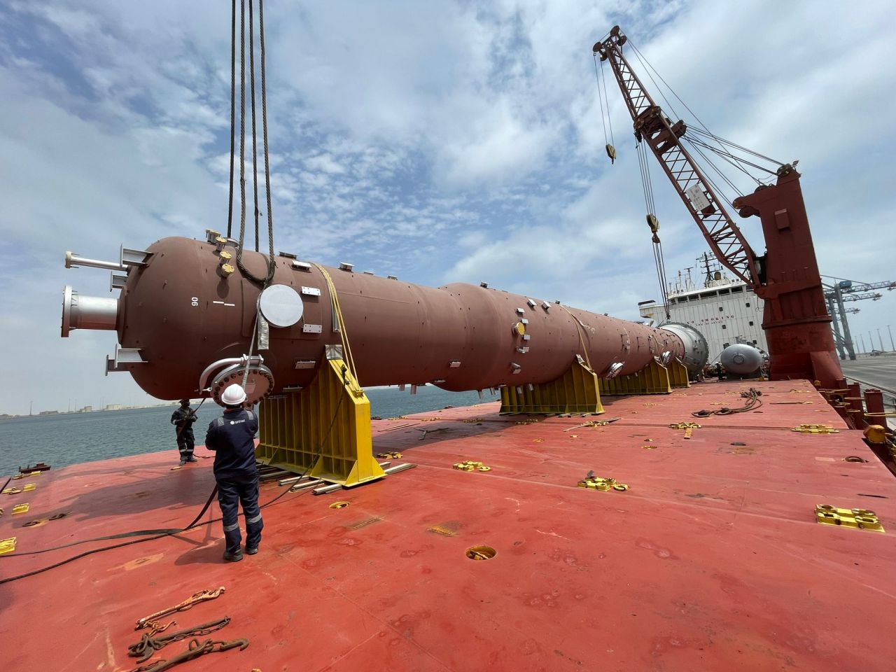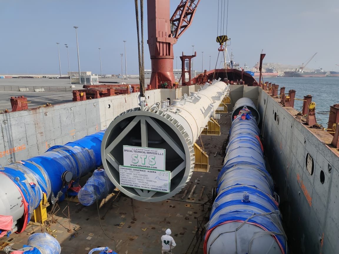 The scope involved the multimodal transport of critical components, including heat exchangers from India and Debutanisers and De-Ethanisers from Oman. In total, 17 cargo units were shipped from Mumbai to Arzew, weighing 617.722 metric tons and covering 1,012.247 cubic meters. The heaviest unit tipped the scale at 216 metric tons, while the longest measured 25.7 meters.