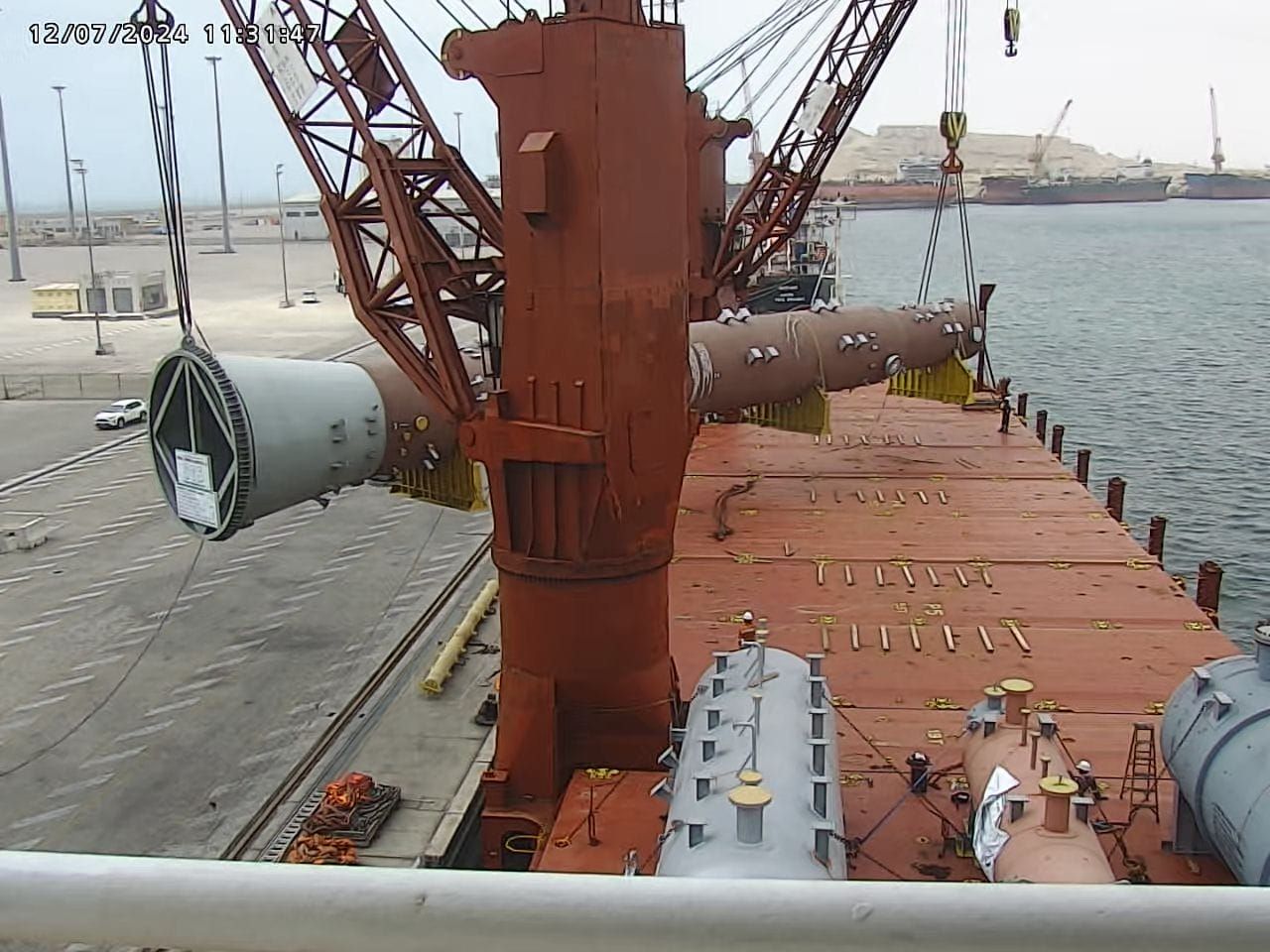 Challenging conditions required expert logistics planning: in Oman, heavy rains had damaged primary transport routes, necessitating extensive civil works and alternative access. Due to insurance restrictions related to the Red Sea, the cargo was rerouted around the Cape of Good Hope — a detour that added distance, time, and exposure to rough sea conditions, demanding high-precision handling on deck.
